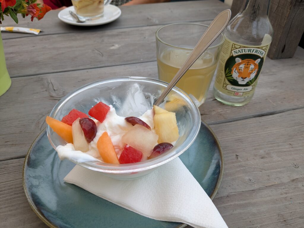 Na een heerlijke strandwandeling streken vriendin D. en ik neer bij De Vrijheit in Heemskerk. Ik nam yoghurt met fruit en een ginger ale. Even schrik, maar gelukkig is de gerstemout extract van Natur frisk glutenvrij.