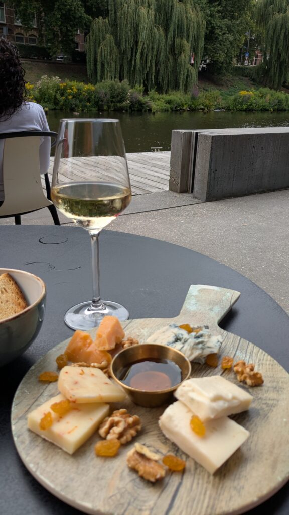 Dit heerlijke kaasplankje met uitzicht namen mijn schoonzus en ik gisteren als slot van ons dagje Den Bosch, bij Bowerk.