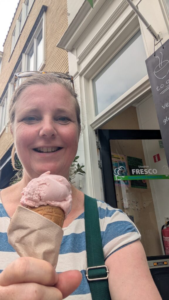 Bij Fresco is bijna al het ijs glutenvrij. Het meisje maakte de schep goed schoon en schraapte de bovenkant weg voordat ze een ijsje voor mij schepte. Zoals het hoort! Met een lekker glutenvrij hoorntje natuurlijk.