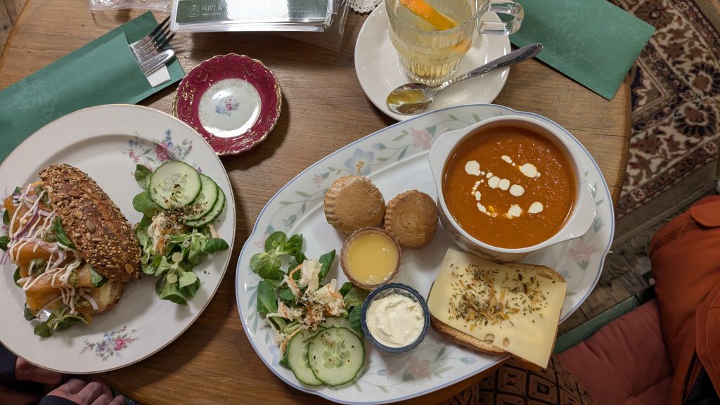 Vandaag ging ik lunchen bij mijn favoriete lunchroom: Fluit en kruid. Deze volledig glutenvrije lunchroom en winkel heeft de lekkerste dingen. Ik nam ‘ik kan niet kiezen‘: soep, scones met lemoncurd en clotted cream, tosti. Mmm! 😍