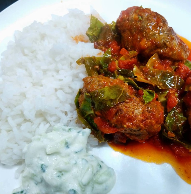Ik maakte #eindelijkoptafel kofta volgens het recept van Sophie glutenvrij met tzatziki. Kofta met groene kool ipv aubergine en courgette.