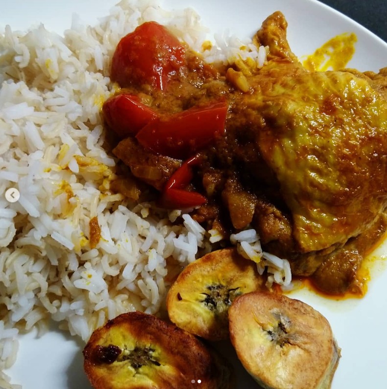 Ik maakte Moambe volgens het recept van vtm koken met rijst en bakbanaan. Tip van mijn collega die in Congo geboren is en toevallig vandaag jarig is .
