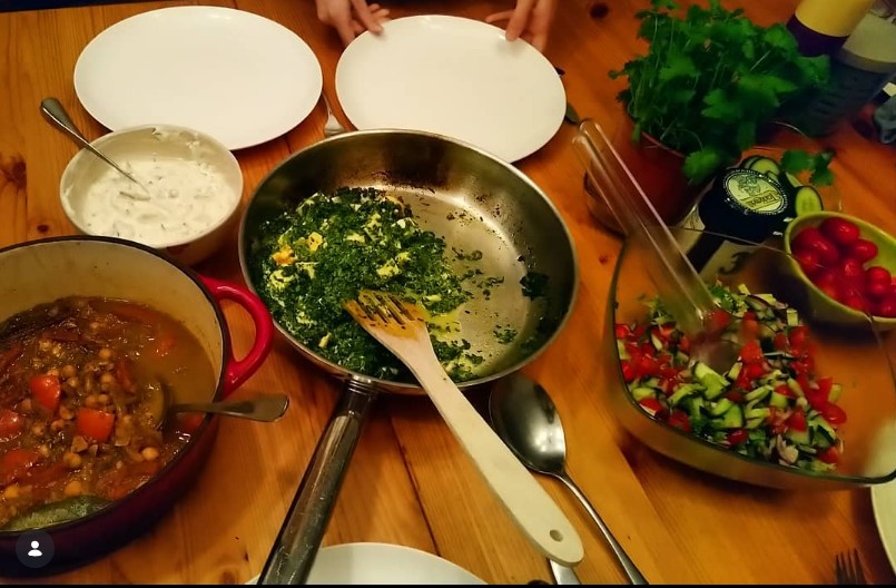 Ik maakte amritsar Pindi Chole volgens het recept van #thegastronormicbong, saag paneer volgens het recept van @culynl (met fetta ipv panir), raita en kachumber volgens het recept van @dewereldopjebord. De dosa’s waren helaas mislukt…