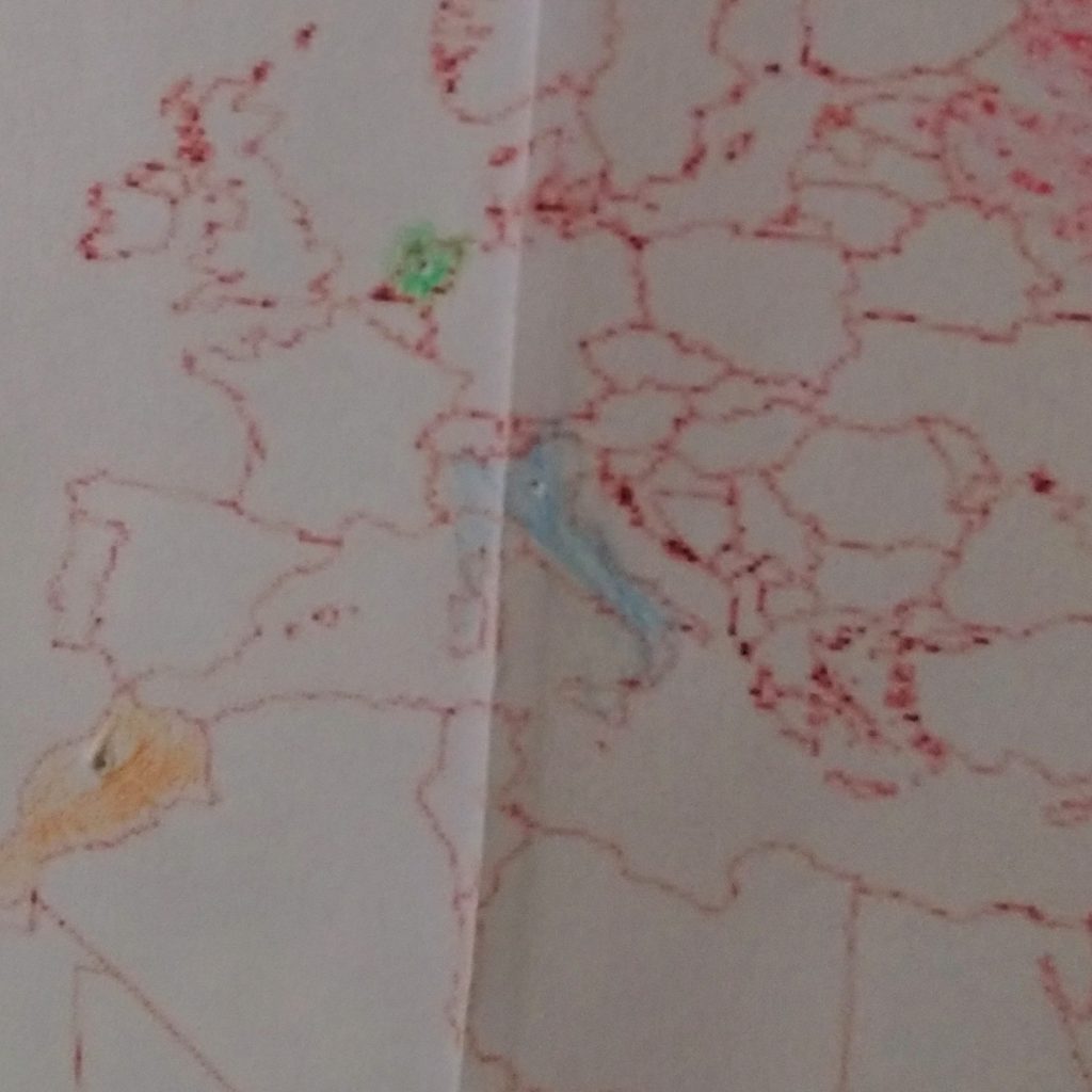 Na de maaltijd kleuren de kinderen het land op de kaart in.