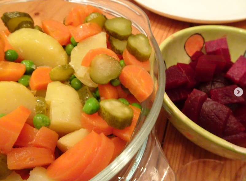 Ik maakte Vinegret en deruny volgens het recept van Ukrainian recipes en nalysnyky volgens het recept van Claudia’s cookbook.
