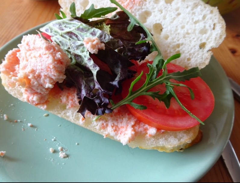 Met glutenvrije krabstick die ik uiteindelijk vond bij de toko.