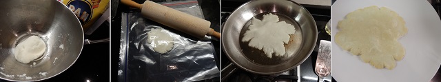 3. Rol het balletje tot een zo dun mogelijke pannenkoek.